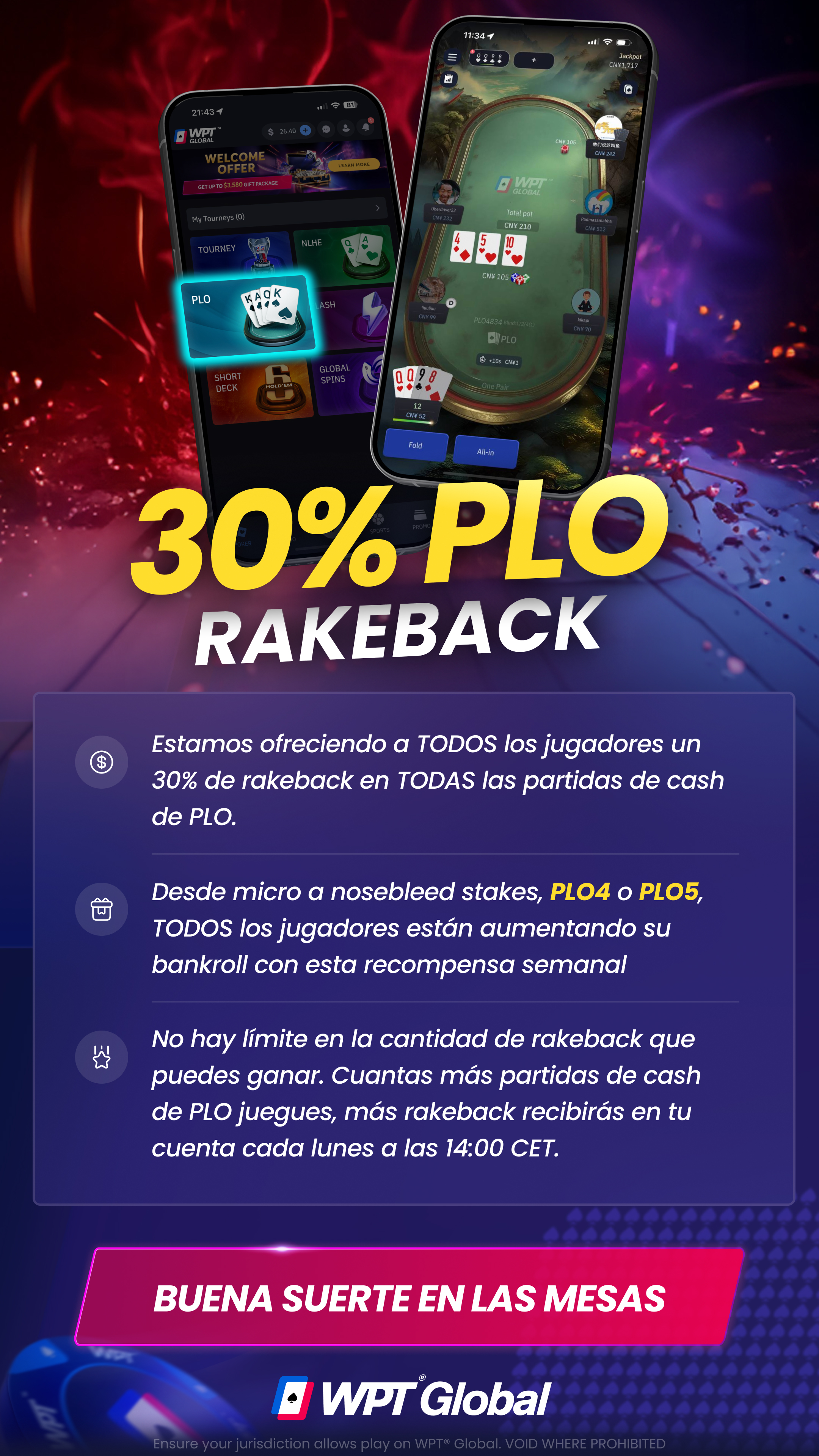 Disponible 24/7 en el lobby de PLO de WPT Global.