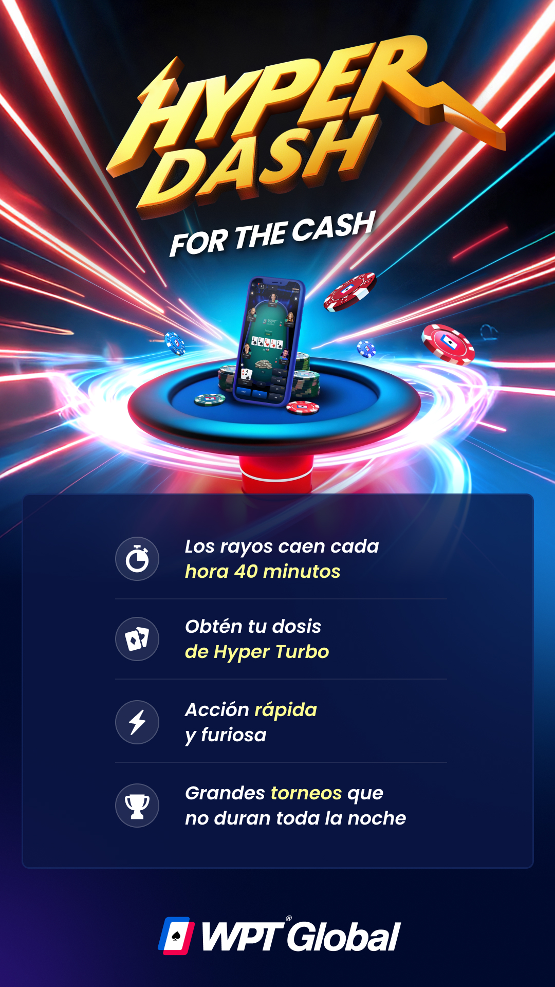 ¡No te lo pierdas! Los torneos Hyper Dash están disponibles todos los días con pura acción de póker.
